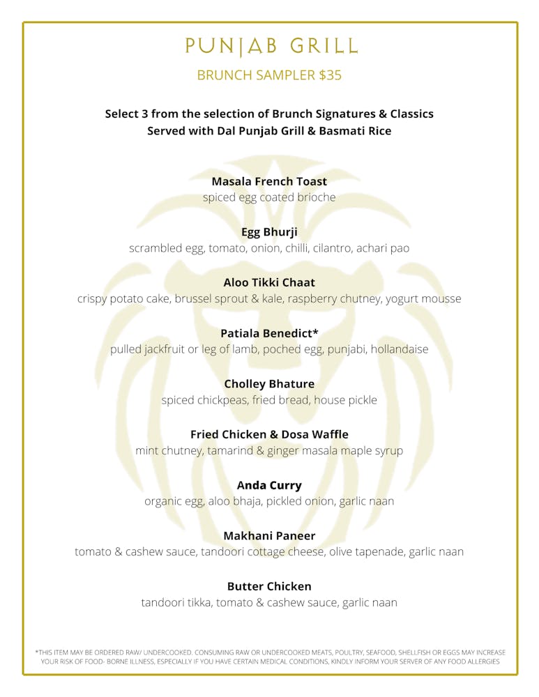 Brunch Menu available on sunday, 11:00 AM to 1:45 PM